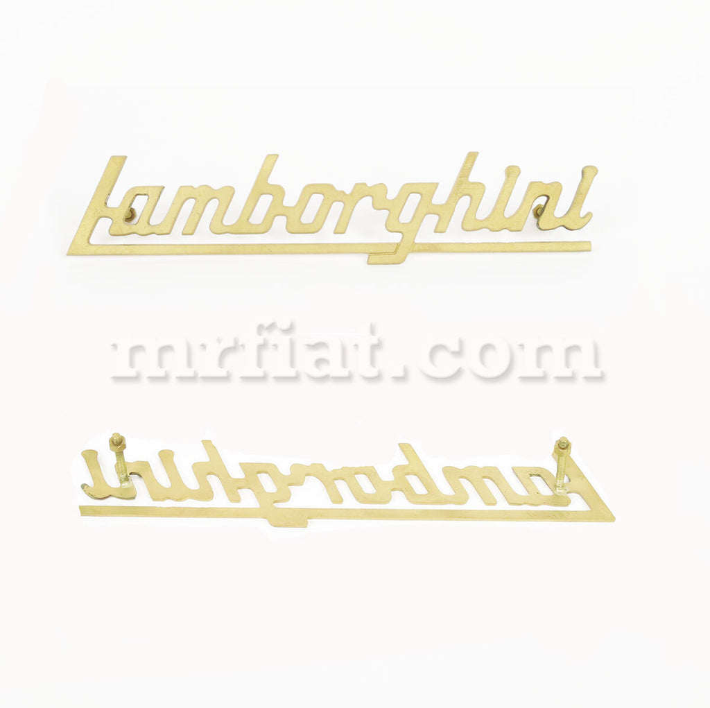 Lamborghini script metal emblem for Miura models. 18.5 cm made in brass and has to be chromed or painted black.