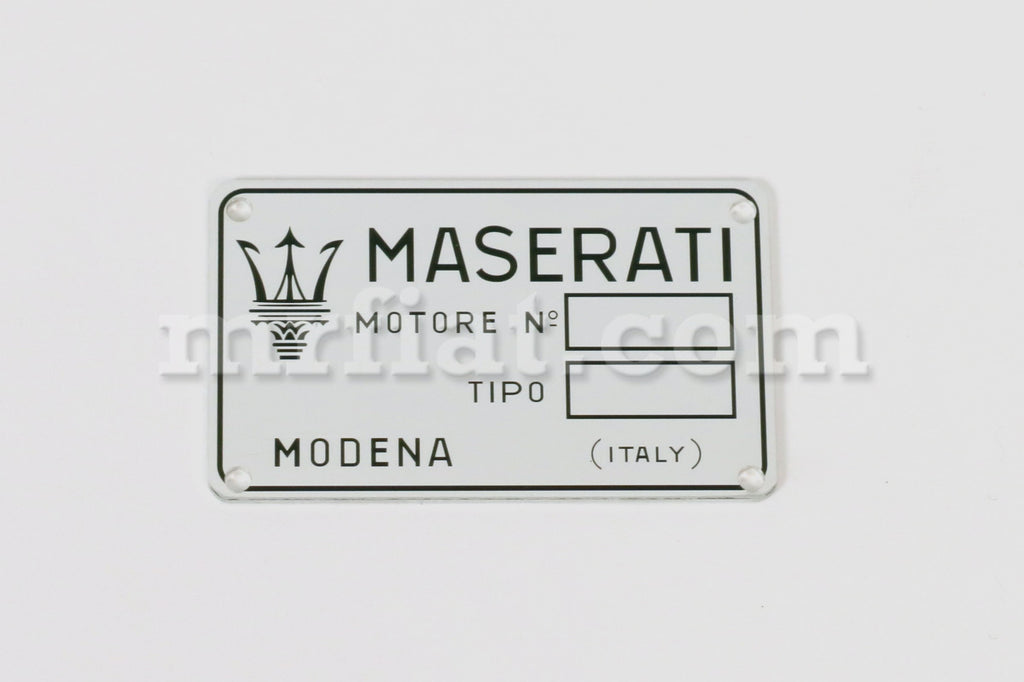 Motor number plate for Maserati 3500 GT very early Series 1 models. This plate is always used in conjunction with the engraved and black infilled chassis plate. It is bright finished.