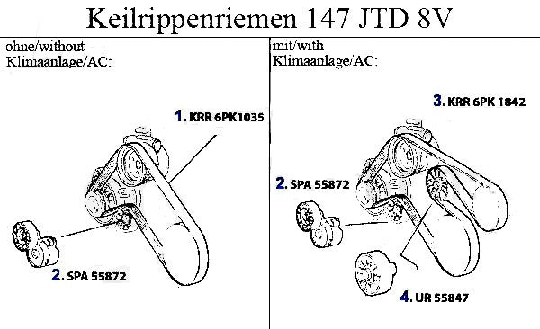 Tension arm v ribbed belt for Alfa Romeo 147 1.9cc JTD models. #2 in corresponding diagram.