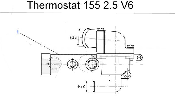 With housing thermostat for Alfa Romeo 155 models. #1 in corresponding diagram.