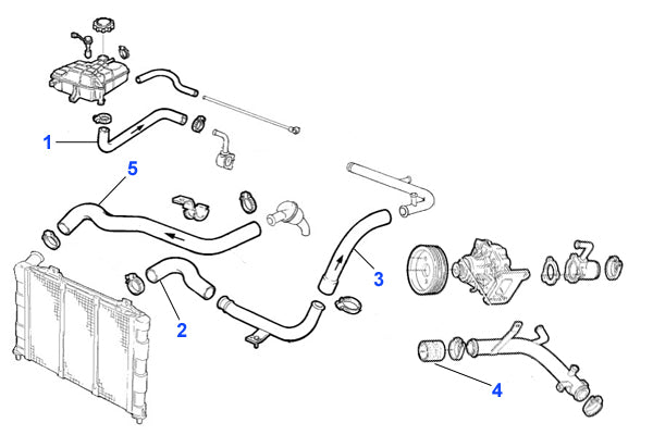 Cooling water hose under expansion tank for Alfa Romeo 155 2.5cc TD models. #1 in corresponding diagram.