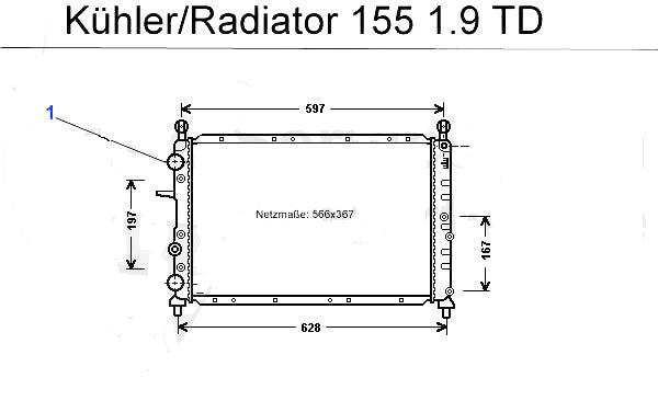 Cooling radiator for Alfa Romeo 155 1.9cc TD models. #1 in corresponding diagram.