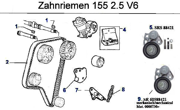 Gasket-set belt tensioner for Alfa Romeo 155 models. #4 in corresponding diagram.