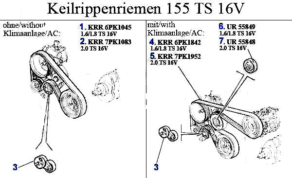 V ribbed belt power steering pump for Alfa Romeo 155 models. #2 in corresponding diagram.