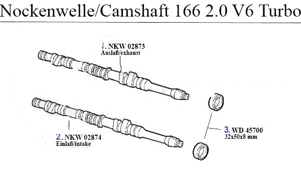 Camshaft left for Alfa Romeo 166 2.0cc V6 models. #2 in corresponding diagram.