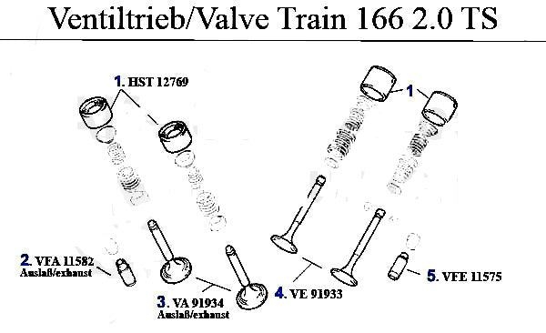 Exhaust valve for Alfa Romeo 166 1.8cc/2.0cc TS models. #3 in corresponding diagram.