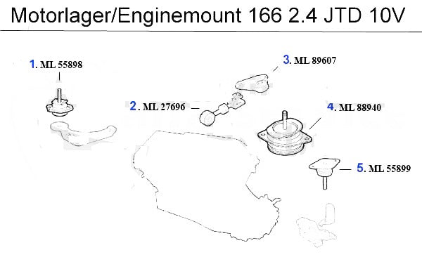 Enginemount for Alfa Romeo 166 2.4cc JTD 10v models. #5 in corresponding diagram.