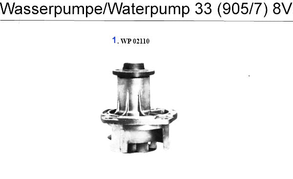 Water pump for Alfa Romeo 33 (905/7) models. #1 in corresponding diagram.