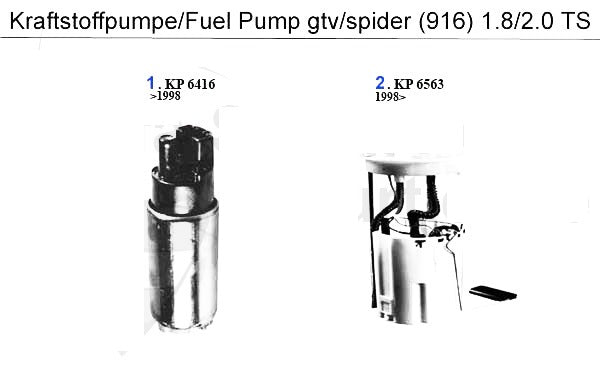 Fuel pump for Alfa Romeo GTV/Spider (916) 1.8cc/2.0cc TS models. #2 in corresponding diagram.