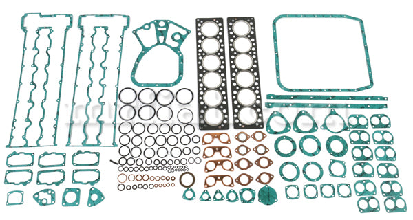 Complete gasket set for Ferrari 365 GTB/4 and GTS/4 Daytona engines. It comes with all rubber rings, valve stem seals, exhaust gaskets and elring head gasketswhen required with fire rings . It does not include oil seals.