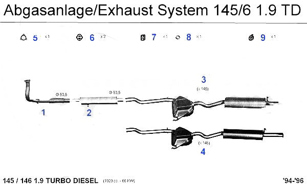 Rubber exhaust suspension for Alfa Romeo 145/6 TD models. #7 in corresponding diagram.