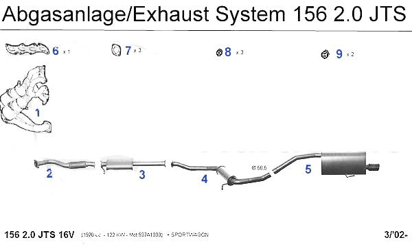 Mitteltopf for Alfa Romeo 156 2.0cc JTS models. #4 in corresponding diagram.