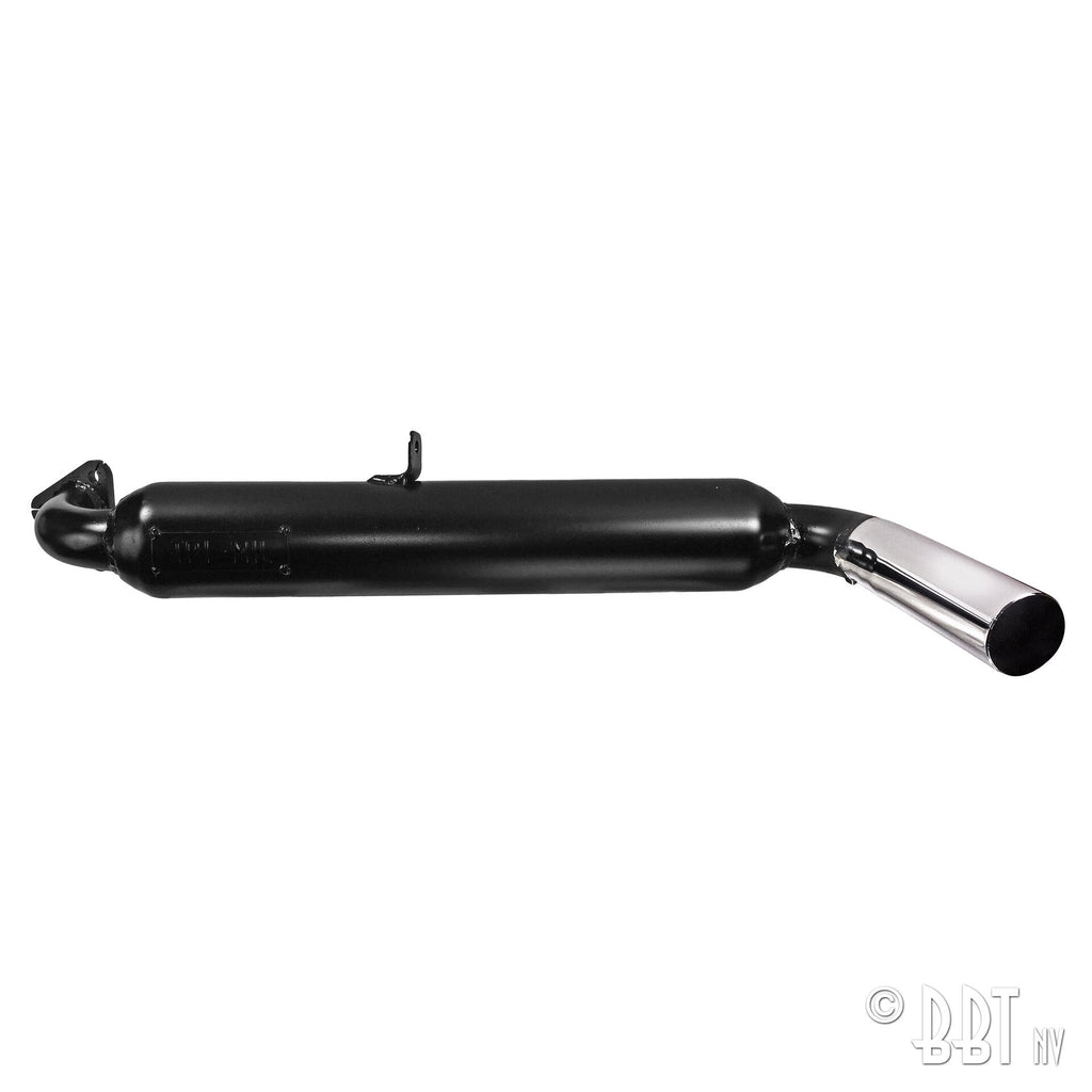 Muffler 'California' - Tri-Mil This Tril-mil exhaust is supplied in plain steel. This may cause some surface rust, but it is easy to remove.The advantage of blank steel is that you can treat it right away with a heat-resistant lacquer without having to remove a transport lacquer first. for Beetle, Bus Brasil, Bus T1, Bus T2A, Bus T2B, Karmann Ghia 14, Type 181, Type 3 models.