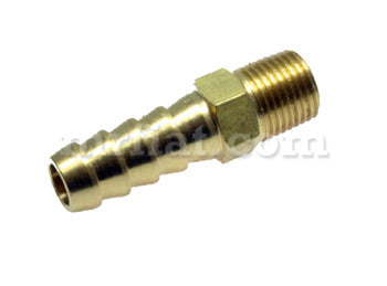 Brass straight fuel pump fitting for Ferrari 206 and 246 GT GTS models. Connector: 8mm. With the T-piece and a piece of fuel hose you can replace the T-pieces TAV. 8-27 and 8-28.