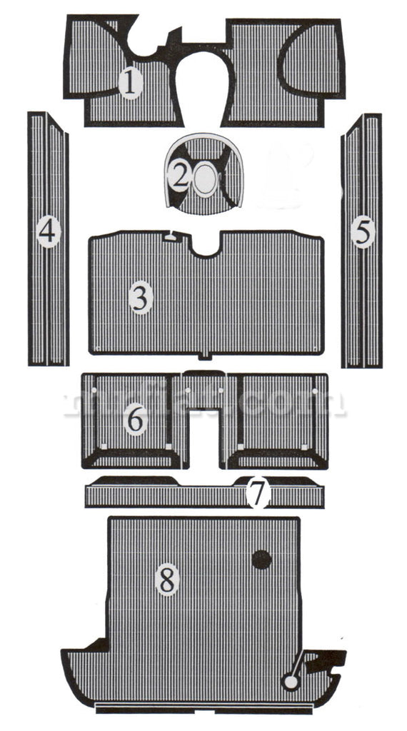 Rubber mat #4 for Lancia Fulvia Coupe 1st Series models from 1965 - 69 and HF. There is a 2-3 week production time for this item. Made in Italy. Original Equipment Manufactured Part. Part number: 13268-004