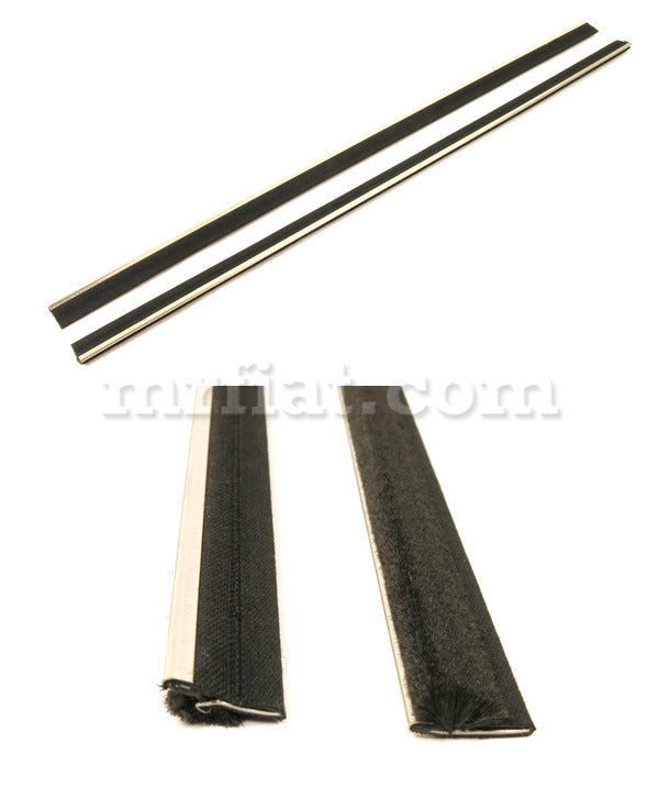 Window glass fuzzy strips with inox border for Alfa Romeo Duetto Round Tail Spider models. There is a 2-3 week production time for this item. Made in Italy. Original Equipment Manufactured Part. Part number: 10060-919