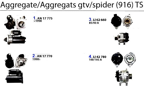 Alternator for Alfa Romeo GTV/Spider (916) 2.0cc TS 16v models. #3 in corresponding diagram.