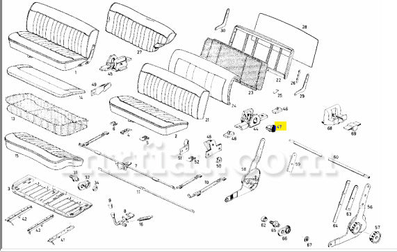 Seat regulation handle rubber stop for Mercedes W180, 220a, 220 S, 220 S Cabriolet and Coupe, W186, 220 SE, 220 SEb Cabriolet and Coupe models. Made in Italy.
