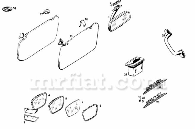 Parasol atornillado al soporte izquierdo para modelos Mercedes 230 SL 250 SL. Hecho en Italia. N.° de pieza: MB-280-107