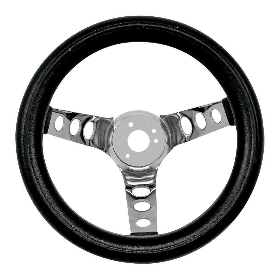Steering wheel 3 spokes 12 inch for Beetle, Bus T25, Bus T2A, Bus T2B, Karmann Ghia 14, Type 181, Type 3, Type 4 models.