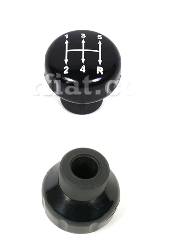 Black push on plastic gearshift knob with accurate 5-speed shift-pattern for Alfa Romeo GT Junior and GTV models. It is suitable for vehicles with telescoping shift levers. The height is 45 mm. The insertion hole inner diameter is 14 mm. Made with original OEM tooling in Italy.