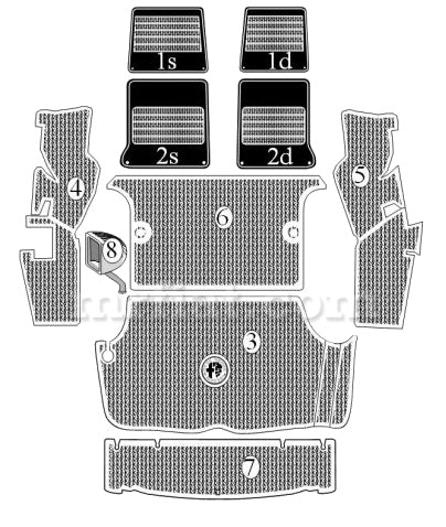 Right wheelhouse rubber mat #5 for Alfa Romeo GT Junior 1300, GTA, GT, 1600, 1750 and 2000 models from 1965 - 76. There is a 2-3 week production time for this item. Made in Italy. Original Equipment Manufactured Part. Part number: 10056-005