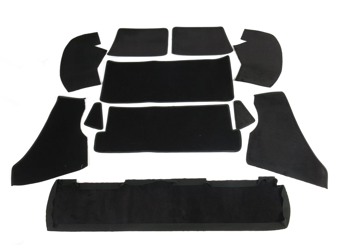 Complete 11-piece trunk carpet set for Ferrari 308 GT44 seaterfrom 1973-80 models. These hand crafted carpet sets are probably the best you can buy for originality and fit. The Modena factory specifications are closely matched throughout the production processfrom stitching, edge binding, right down to the piping in the door pockets. Even the original Ferrari driver and passenger heel pads are reproduced to exact standards in our rubber molding and casting facility. All materials are precision cut, pressure glued and pre-formed to guarantee a factory authentic fit. The materials are top quality velours from a wool/nylon blend which are available in most original colorsblack, red, beige, biscuit, tan and dark blue. Installation requires no specific tools and is comfortably within the ability of a moderately experienced home mechanic. There is an up charge for black loop pile, please inquire.