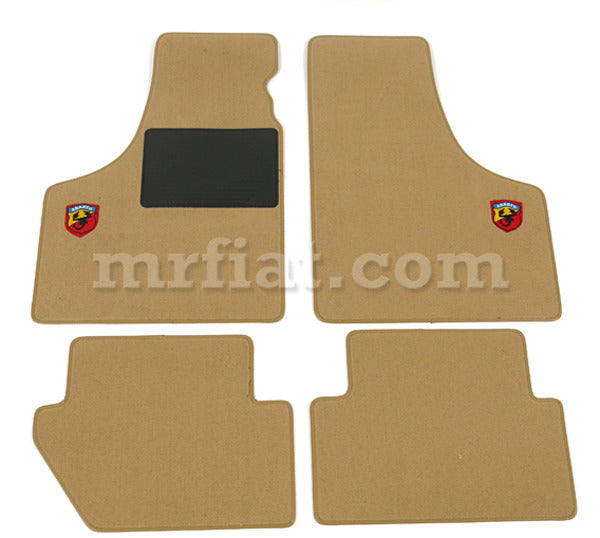 Set of beige floor mats with Abarth logo embroidery for Fiat 500 and 600 models from 1957-75.