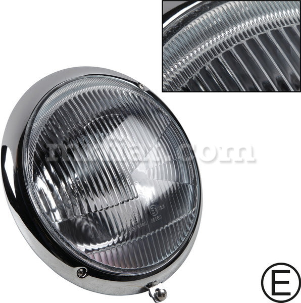 OEM style asymmetric headlamp assembly for LHD Porsche 356 A and B models from 1955-63. Suitable for left or right side.