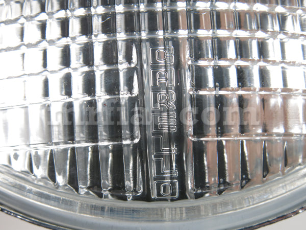 ONE new 136 mm Carello outer headlight for for Alfa Romeo Montreal and De Tomaso Deauville models. The glass has CARELLO written on it with the following #s on it : 03.240.700.
