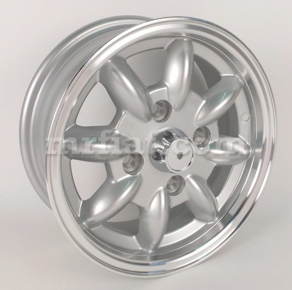 Silver polished 5.5x13 Minilite style wheel fits Nissan 120, 140, 160, 180, and Cherry models. Bolt Pattern: 4 x 114.3 ET 25. Weighs 4.8 kg. Made in Germany. Thia rim is at a discounted price.
