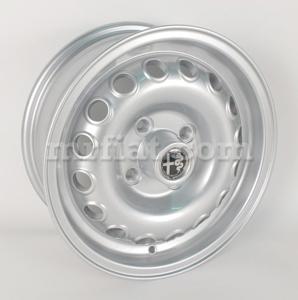 OEM silver 6 x 14 GTA wheel for Alfa Romeo Spider models. Bolt Pattern: 4 x 108 ET 30. It is made out of light alloy with a very high quality level of molding, machining and finishing . The holes are made from molds and not from drilling. It is available in glossy or matte silver. Made in Italy.