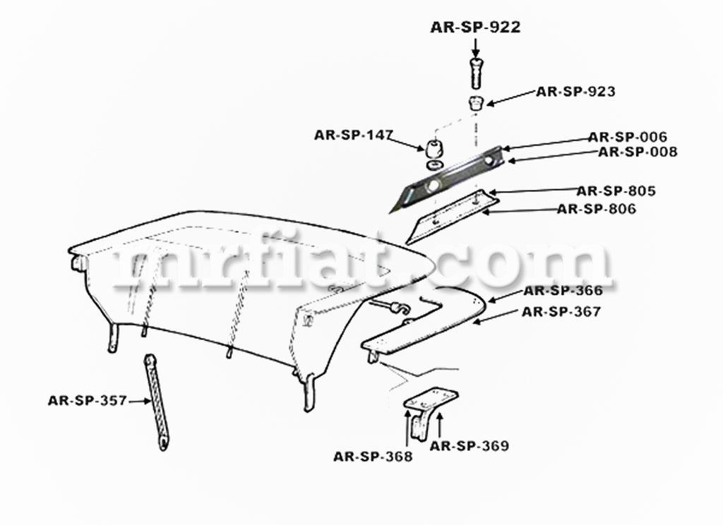 Large right boot cover mount for Alfa Romeo Spider models from 1990-93. Made with original OEM tooling in Italy.