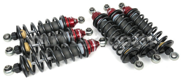 Amortiguadores 1K2 de 6 piezas para modelos Lamborghini Countach del 1974 al 85. 1K2 Altura y amortiguación ajustables. El 1K2 es un verdadero amortiguador de alta gama para uso exigente en calle y competición. El 1K2 está construido con los mejores materiales. La carcasa está fabricada en aluminio 7075. Esto garantiza un peso reducido, una resistencia máxima y una refrigeración óptima. El amortiguador 1K2 siempre se elige en el tamaño más grande posible para lograr el control más preciso de la amortiguación: normalmente un cuerpo de 46 mm con un pistón de 40 mm y un vástago de 16 mm. Los puntales Mac Pherson normalmente se convierten del vástago de pistón estándar de 22 mm a un sistema invertido con un tubo guía de 40 o 45 mm para lograr máxima rigidez y guía de las ruedas. Esto es especialmente importante cuando las fuerzas G son mayores que las que se pueden obtener con el vehículo estándar. Opcionalmente, el 1K2 puede equiparse con un revestimiento Black Titan en la guía y en el vástago del pistón. Se trata de un revestimiento que no se oxida y es extremadamente duro y liso. La fricción se reduce con estos vástagos de pistón, lo que mejora la comodidad, reduce la temperatura del aceite, mejora la tracción y prolonga la vida útil en las condiciones más severas. El Black Titan es un lujo que, si te lo puedes permitir, sin duda es recomendable. Cuando hay suficiente espacio disponible, el 1K2 puede equiparse con un ajustador de índice de resorte que permite cambiar la constante del resorte sin quitar los puntales o los resortes. Configuraciones Para la mayoría de las aplicaciones, existen las siguientes configuraciones diferentes en índices de resorte, pilas de cuñas y pistones de amortiguación disponibles: 1 Fast street o trackday ocasional. Se trata de una actualización del aspecto deportivo del equipamiento OEM. El confort diario, los niveles de vibración y ruido son tan importantes como el manejo. 2Trackday o circuito de carreras con baches o Nordschleife. Una suspensión para correr tanto en circuitos suaves como con baches. Es posible viajar hacia y desde los circuitos. La altura de manejo es suficiente para circular por vías públicas. Los tiempos por vuelta y el manejo son más importantes que los niveles de comodidad. 3Carrera o rally completo. Suspensión rígida, diseñada para funcionar con slicks y jaula antivuelco instalada. No utilizable en la calle. Tiempo de vuelta optimizado.Parte: LAM-55031K2