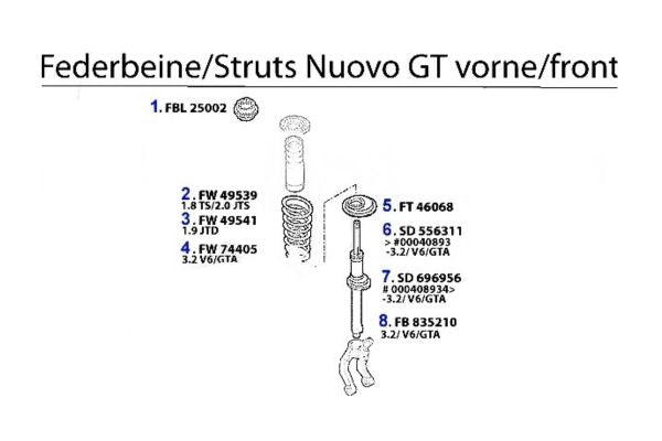 Front shock absorber top pin bottom clamp for Alfa Romeo Nuovo GT models. #6 in corresponding diagram.