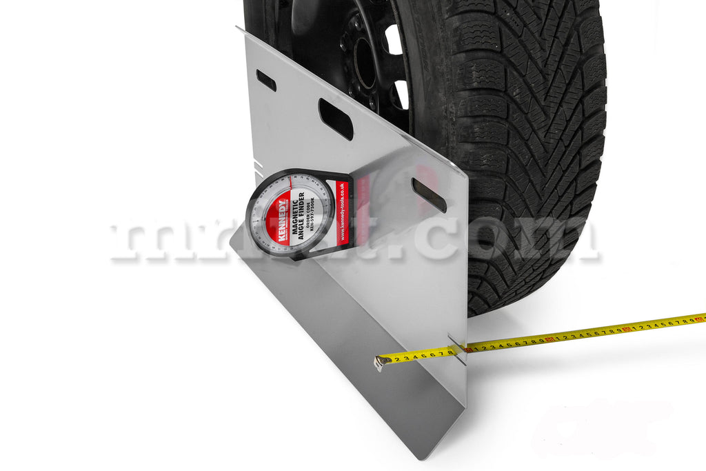 Camber wheel alignment set for all BMW E30 models. It is used for setting the angle of inclination / geometry of the axis. With this set, the camber, the geometry or the angle of the axle can be adjusted without using special tools or having to drive to the workshop. Set consists of: 2 specially shaped steel sheets, 2 x measuring tape 3 meters, and magnetic protractor inclinometer . To achieve the correct inclination on the front axle. Particularly useful during training or in competitions for quick adjustment or readjustment. Quality product from Hamburg.