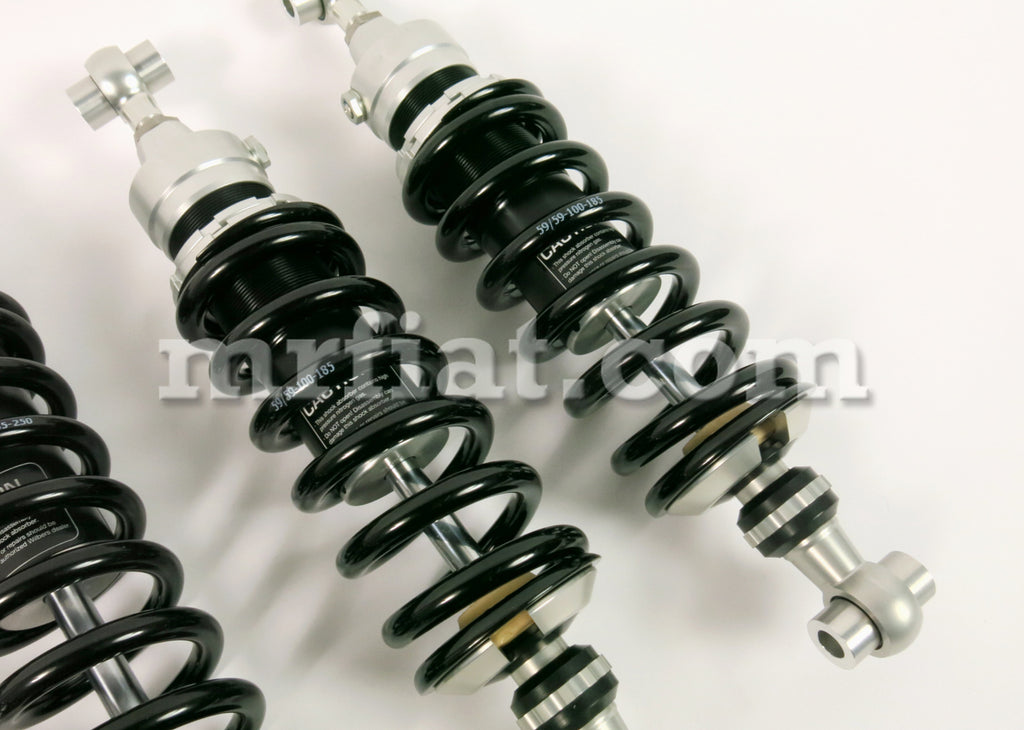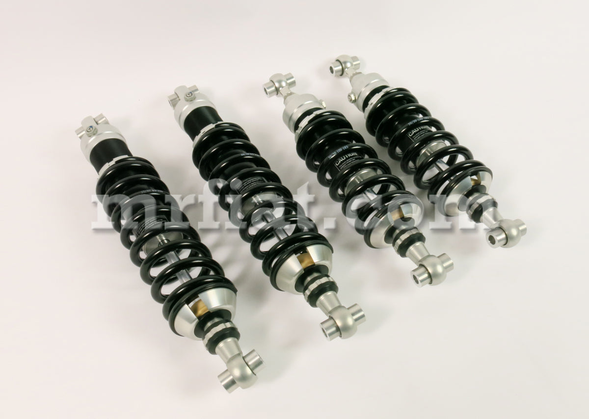 Complete front rear coilover kit for Ferrari 208 and 308 GT/4 GTB GTS models. Height and hardness in rebound and compression damping adjustable.