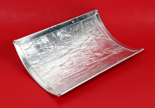 Driveshaft heat shield for Ferrari 206 and 246 GT GTS models. It is made out of 1.5 mm. thick edged, buckled and welded aluminium and its inside is fiber-glass laminated. It protects the right drive shaft rubber boots from heat radiation. Due to the high manufacturing tolerance, this item is supplied without mounting bracket.