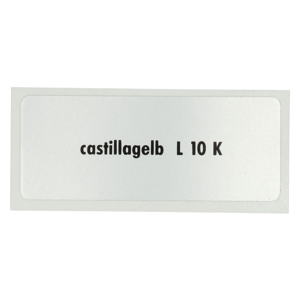 Sticker L 10 K, Castillian Yellow for Beetle, Bus T1, Bus T2A, Bus T2B, Karmann Ghia 14, Type 3 models.