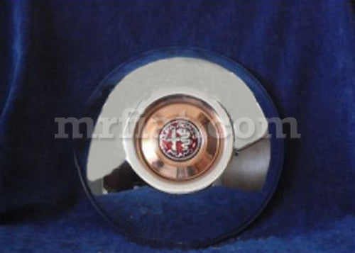 Chromed brass wheel cover with copper hubcap and emblem for all Alfa Romeo 6C 2500 models. This item is only produced upon request.