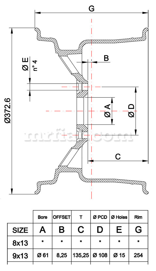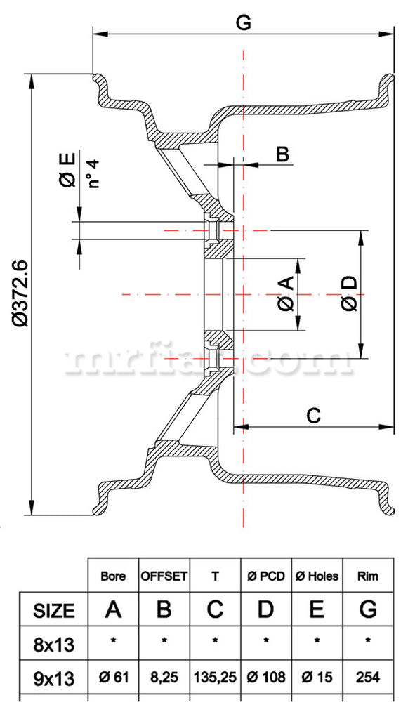 ONE new 9 x 13 Campy magnesium replica wheel for Alfa Romeo GTAm models. It weighs 14.7 lbs. This wheel is made out of magnesium alloy AZ91 T4 using sand gravity casting process. It is a perfect replica of the original wheel and its production is based on the original drawings or wheel. Special colors are also available for an additional cost of100. Made in Italy.