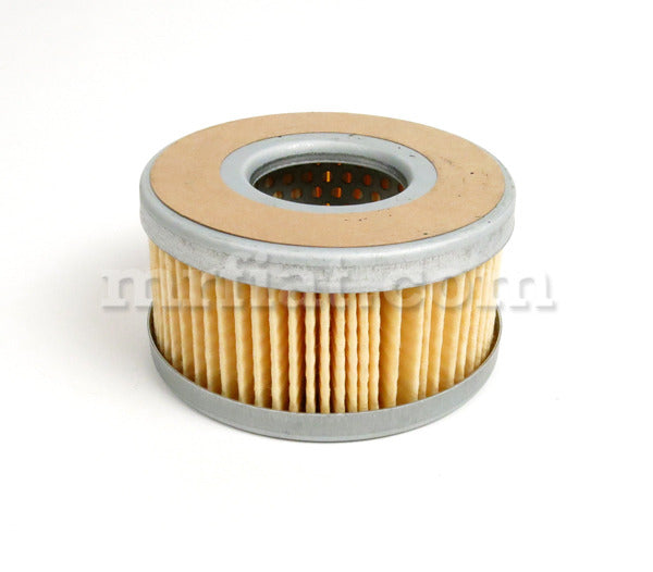 Filtro de combustible de papel para los modelos Alfa Romeo Montreal. Diámetro exterior: 3,25. Diámetro interior: 1,25. Altura: 1,75.