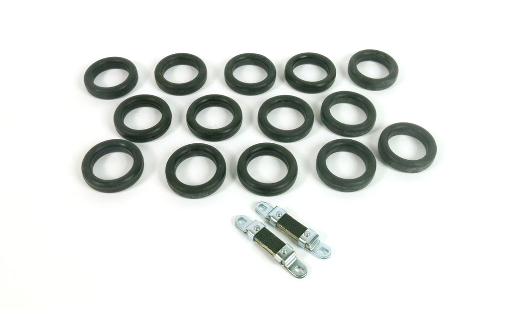 Exhaust support set 2 support, 4 s. ring, 10 l. ring eu for Ferrari 365 GTC 4 Gobbone models. There is a 2-3 week production time for this item. Made in Italy. Original Equipment Manufactured Part.
