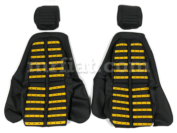 Set of black with yellow inserts leather seat covers for Ferrari Dino 206, 246 GT, 246 GTS models. Made in Italy.