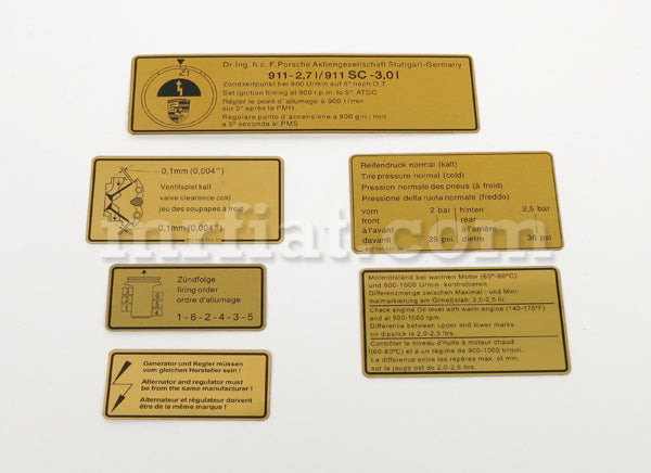 Set of engine compartment adhesives Porsche 911 models with a 2000, 2200, 2400, 2700, and 3000 engine. Made in Italy.