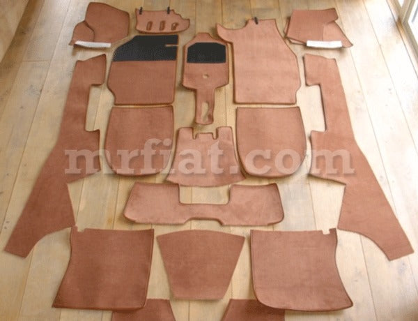 Complete 16-piece carpet set Porsche 911 and 912 Targa and Coupe models from 1965-68 with short wheel base SWB .These hand crafted carpet sets are among the best you can buy for originality and fit. The St ttgart factory specifications are closely matched from materials, colors, stitching, edge binding, right down to buttons and heel padding.The materials are high quality velours available in most common original colors: Charcoal Pepper amp Salt' , Black, Beige, Brown, Mocha, Dark Blue and Red Velours. The typical 'Pepper amp Salt' is also available in the original Haargarn velours woven, 100 wool and the original Haargarn boucl woven, 100 wool for the early SWB models.The set comes with easy to follow step-by-step installation instructions and pictures. Installation requires no specific tools and is comfortably within the ability of a home mechanic.There is an up charge for color, material, custom colors or contrasting piping, please inquire.