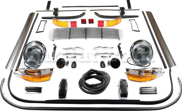 Retro backdate kit Porsche 911/9643.6LCoupe models from 1988-93.This kit includes the following items: -2 x Headlamp Chrome Rim Porsche 911/964non leveling typeLHD CARS91163111300/2 -1 x Air inlet grille for rear engine cover. Porsche 911 65-7391155904100/2-1 x Indicator UnitampLens Front Metal Casing. Porsche 911 1969-7390163140103/1-1 x Indicator UnitampLens Front Metal Casing. Porsche 911 1969-7390163140203/1-1 x Front Bumper Chrome Molding with Impact Rubber. Porsche 91190150504132/1-1 x Front Bumper Chrome OveriderHornwith Rubber Porsche Porsche 911 1965-7391150501700/1-1 x Front Bumper Chrome OveriderHornwith Rubber Porsche Porsche 911 1965-7391150501800/1-2 x Wing Mirror Durant Style Rimless. Porsche 356, 911 1965-6890173111100-2 x Rear Bumper Horn / Over rider. Porsche 911 1965-7390150503320/1-2 x Side Sill MoldingRubber Seal. Porsche 911 1969-7390155910553/1-1 x Front Bonnet / Hood Seal Porsche 911 cars Up to 197390151190104/1-2 x Reflector on bumper rear. Porsche 91190163301000/1 -1 x Indicator lens rear with chrome rim. Porsche 91191163192403/1-1 x Indicator lens rear with chrome rim. Porsche 91191163192303/1-1 x Indicator Lens Front with CHROME Rim. Porsche 911 1967-7491163194301/1-1 x Indicator Lens Front with CHROME Rim. Porsche 911 1967-7491163194401/1-1 x Horn Grille - Chrome. Porsche 911/912 69-7390155943127/1-1 x Horn Grille - Chrome. Porsche 911/912 69-7390155943227/1 -1 x Front Bumper to Body Seal. Porsche 911 1965-7390150509120/8-2 x Rear Bumper Horn/ Overider Rubber. Porsche 911 1965-7390150590321/1-1 x Front Bumper End Cap. Porsche 911 1969-7390150515700/1-1 x Front Bumper End Cap. Porsche 911 1969-7390150515800/1-1 x Rear bumper end cap shiny chromed Porsche 911 1969-73 LWB CARS90150525121/1-1 x Rear bumper end cap shiny chromed Porsche 911 1969-73 LWB CARS90150525221/1-1 x Front End Cap For Wide Deco Sill/ Rocker . Porsche 911 1969-7390155911150/1-1 x Front End Cap For Wide Deco Sill/ Rocker . Porsche 911 1969-7390155911250/1-1 x Rear 1/4 Panel to Body Seal. Porsche 911 1969-72 LWB90150509320/8-1 x Rear 1/4 Panel to Body Seal. Porsche 911 1969-72 LWB90150509420/8-1 x Indicator lens seal front. Porsche 911 1966-7391163197001/8-1 x Indicator lens seal front. Porsche 911 1966-7391163197000/8-1 x Indicator lens seal rear. Porsche 911 1969-8991163197101/8-1 x Indicator lens seal rear. Porsche 911 1969-8991163197100/8-1 x Rear Bumper Centre Panel Seal. Porsche 911/912 65-7390150549720/8-2 x Scuttle Panel Rubber 4.3mm Porsche 911 / 96490150339422/8-2 x Headlamp Seal to Wing Porsche 911 / 96491163111502/8-2 x Horn Grille Top Rubber Seal. Porsche 911 / 91291155943900/8-2 x Rear Bumper Corner Wide Rubber and Molding. Porsche 911 1965 Onwards90150504651/1