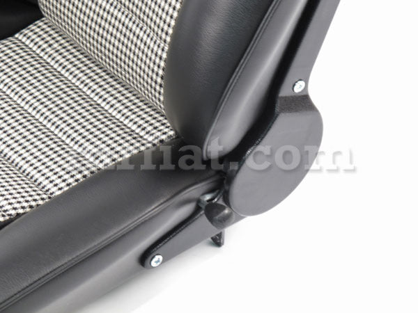 A leatherette houndstooth reproduction Recaro Sport seat. The Sport S model is an exact reproduction of the '70 Porsche 911 Recaro Sport Seat. The shape of the foam and molds have been exactly reproduced to ensure that each seat has the exact shape and form of the original. Also replicated is the recaro tilting mechanism. Like the original, the seat tilts forward, but for better access to the rear we also offer the tilting brackets to lift the complete seat. Additional sliders or tilting brackets required for installation. Made in Italy. Available in different configurations.