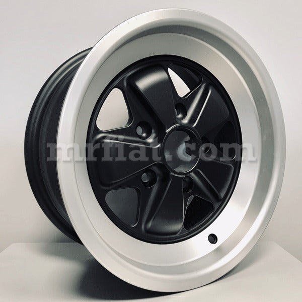 ONE new 9X15 Fuchs wheel Porsche Boxster and Cayman models. Bolt Pattern: 5X130 mm, Offset:15 mm, Center Bore: 71.6 mm, Finish: Matt Black Polished. Includes Center Cap and logo. Wheels are only sold in a set of 2, you must purchase 2 or 4. Made in Italy.