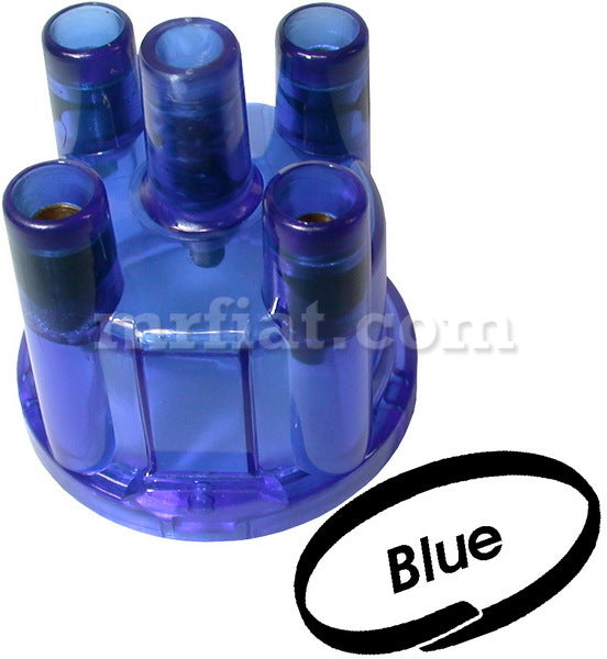 Blue transparent stock top mount distributor cap for Volkswagen Beetle models from 1968-86. Fits Bosch distributors.